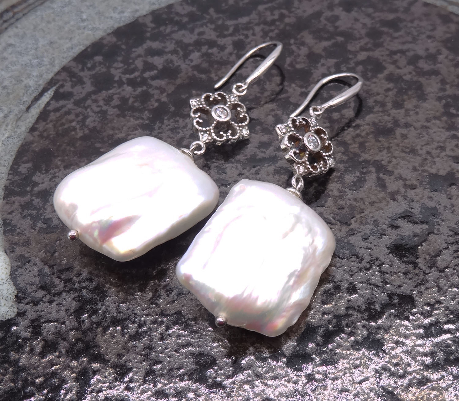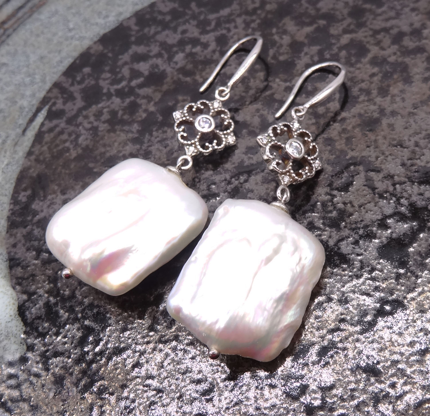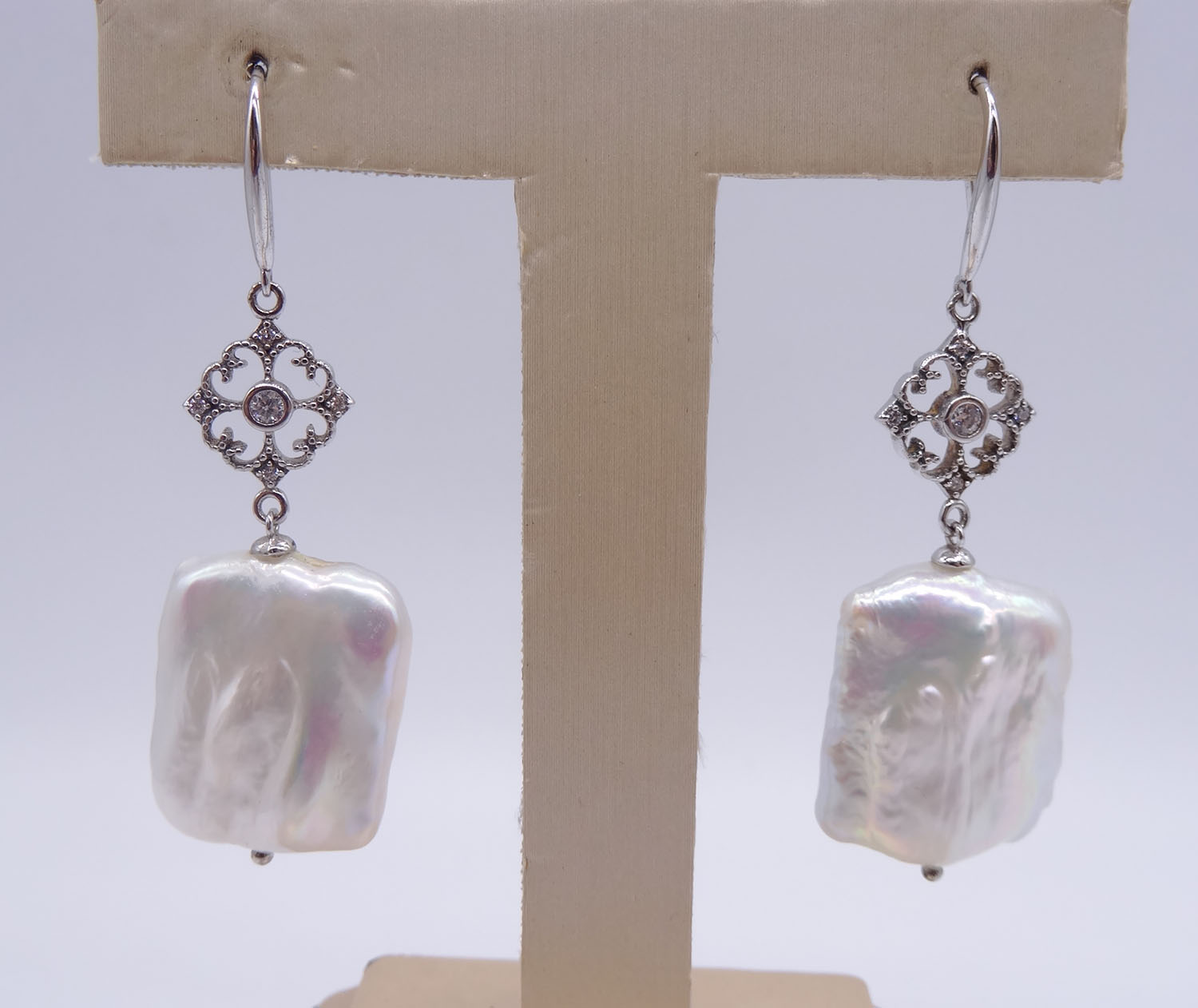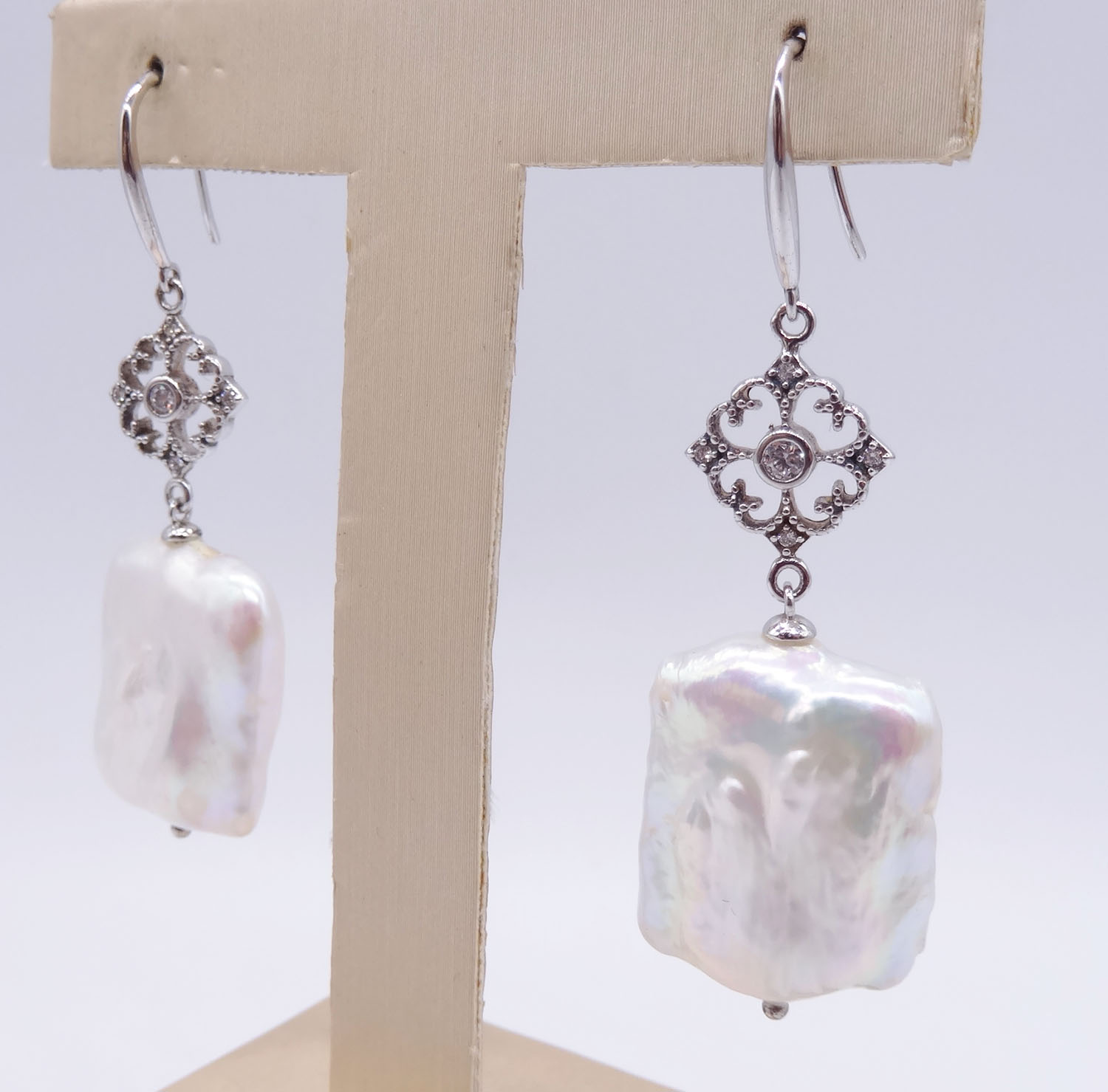 925 Sterling Silver Baroque Pearl Earrings 280003