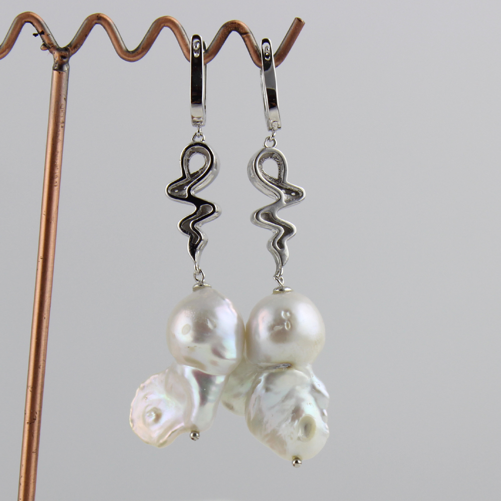 925 Sterling Silver Baroque Pearl Earrings 280008