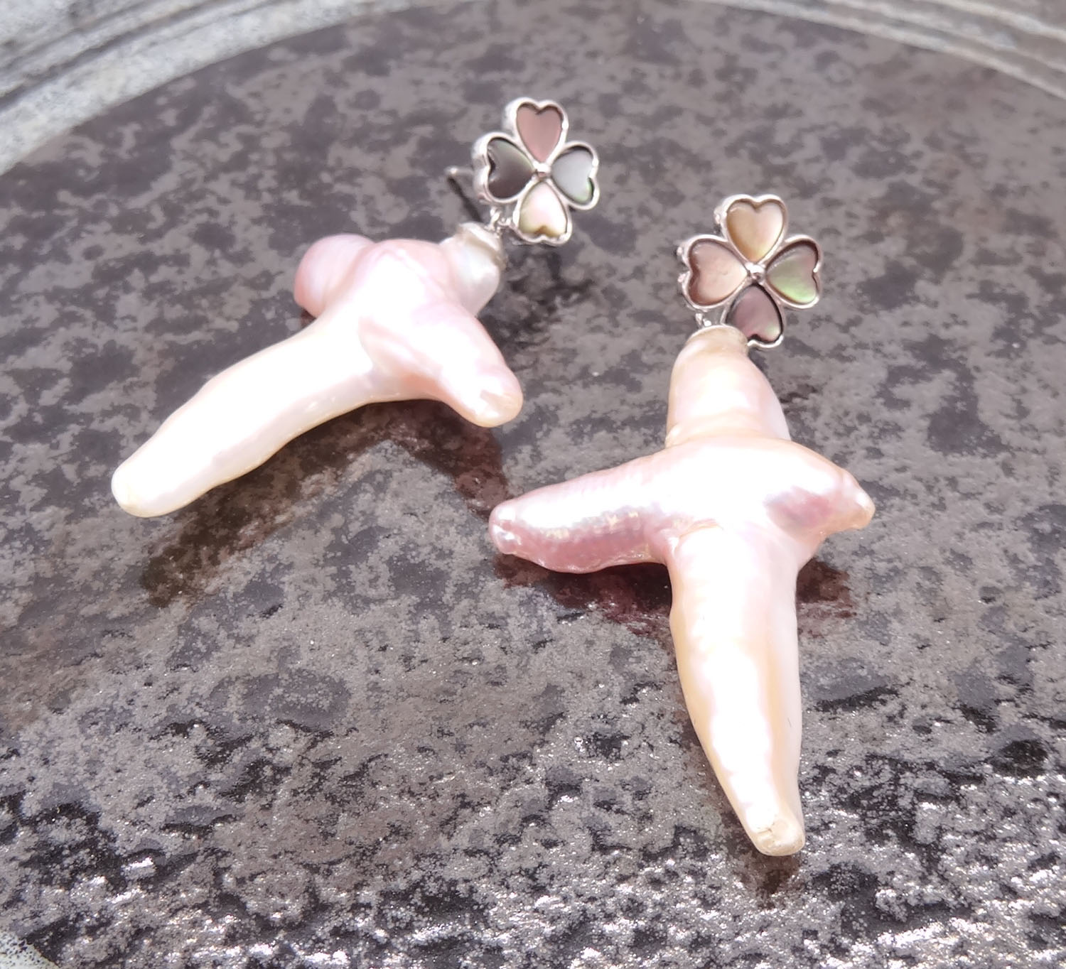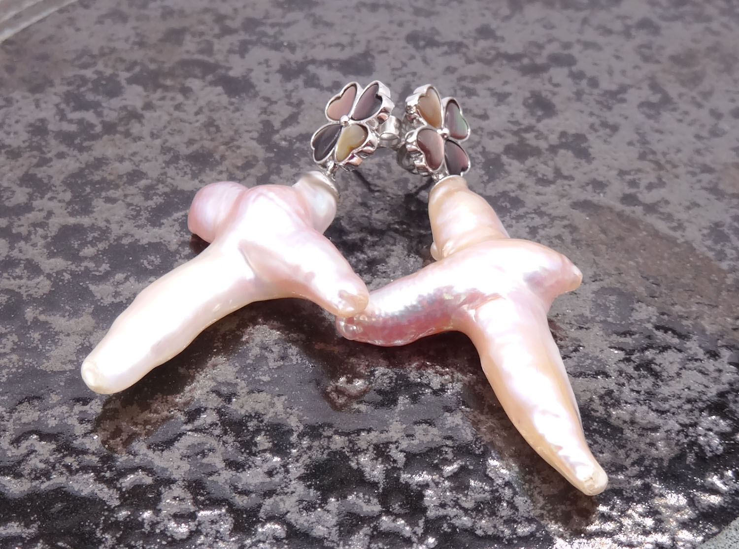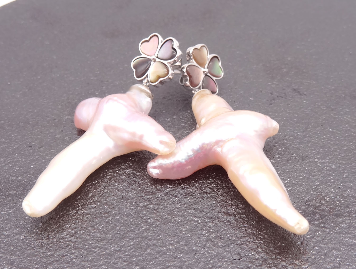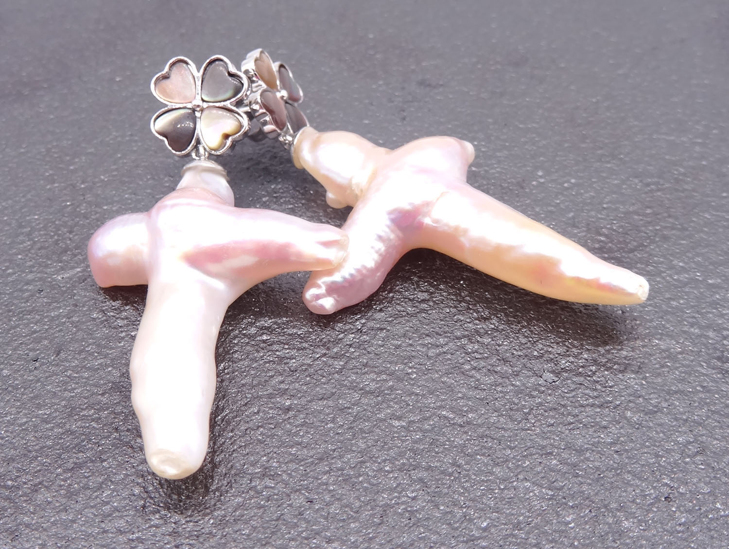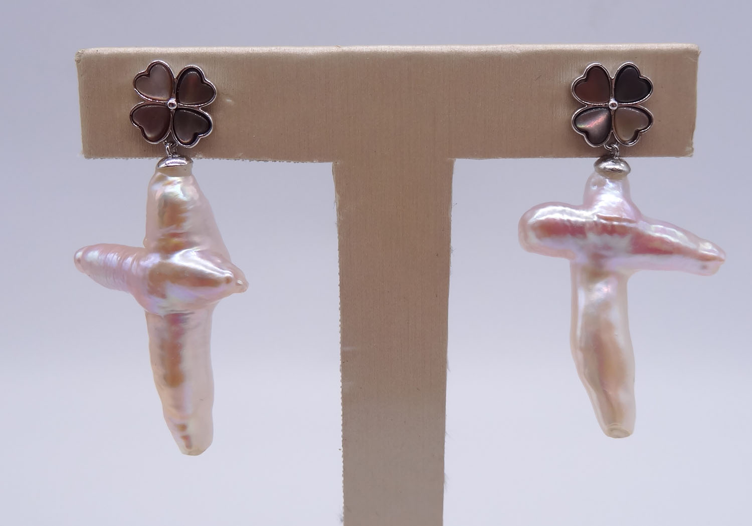 925 Sterling Silver Cross Pearl & Tahitian Mother Of Pearl Earrings 280002