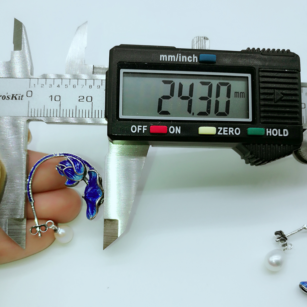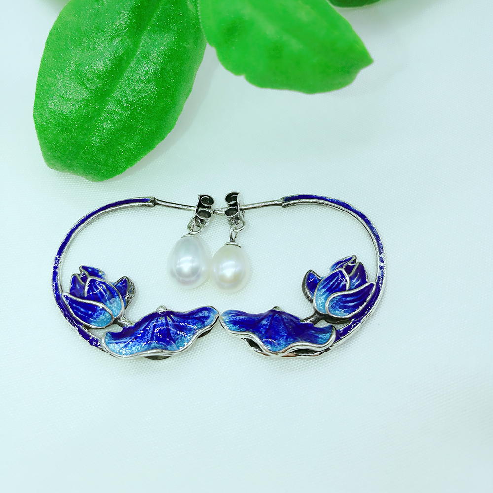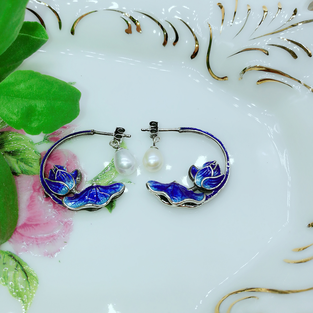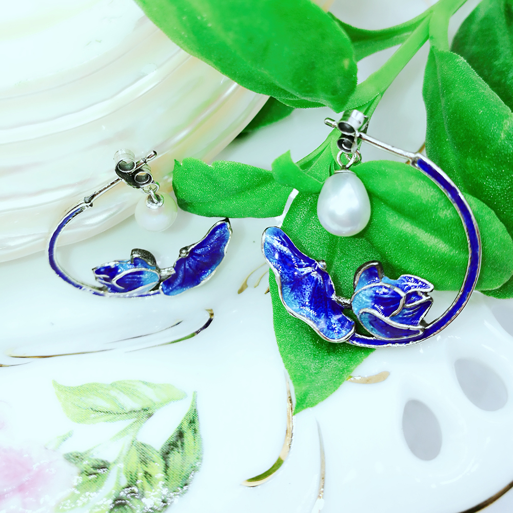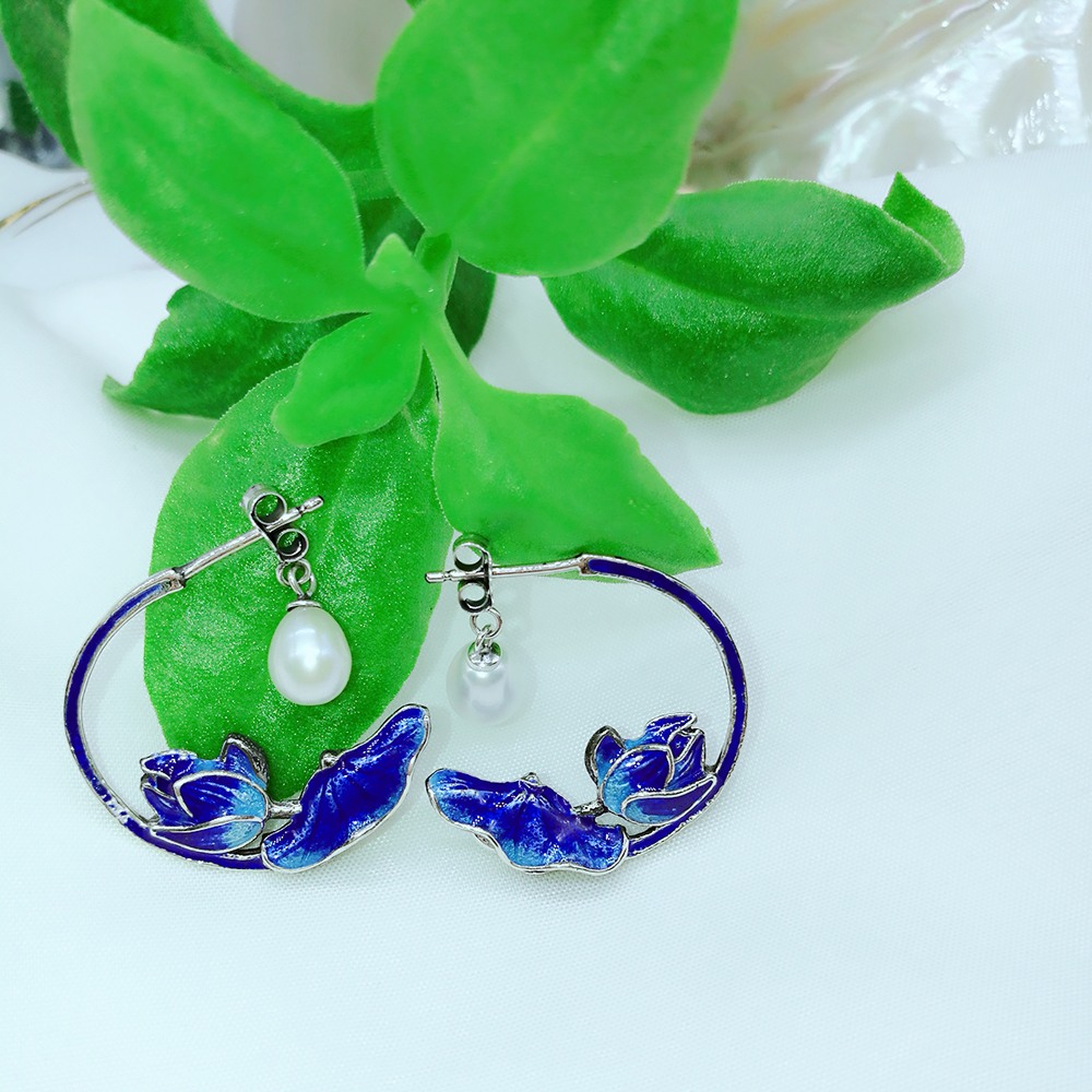 Enamel 925 Sterling Silver Pearl Earrings 211357