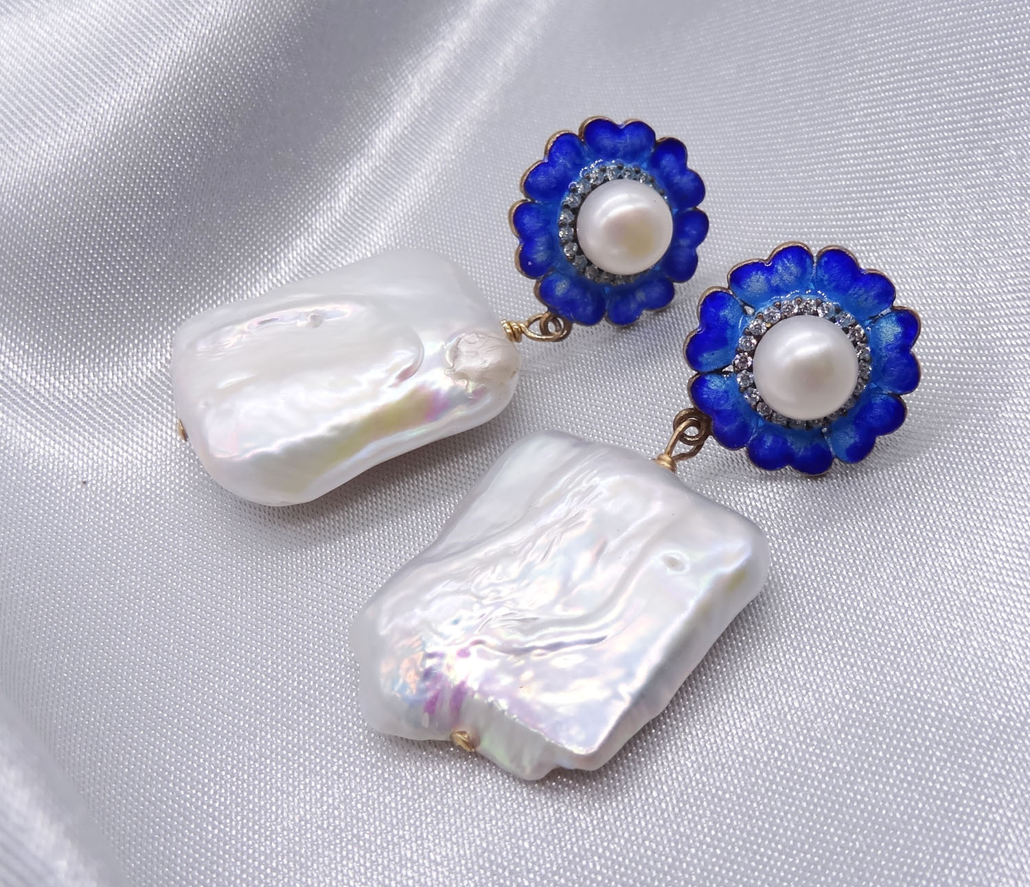 enamel 925 sterling silver pearl earrings 270580Enamel 925 Sterling Silver Pearl Earrings 270580