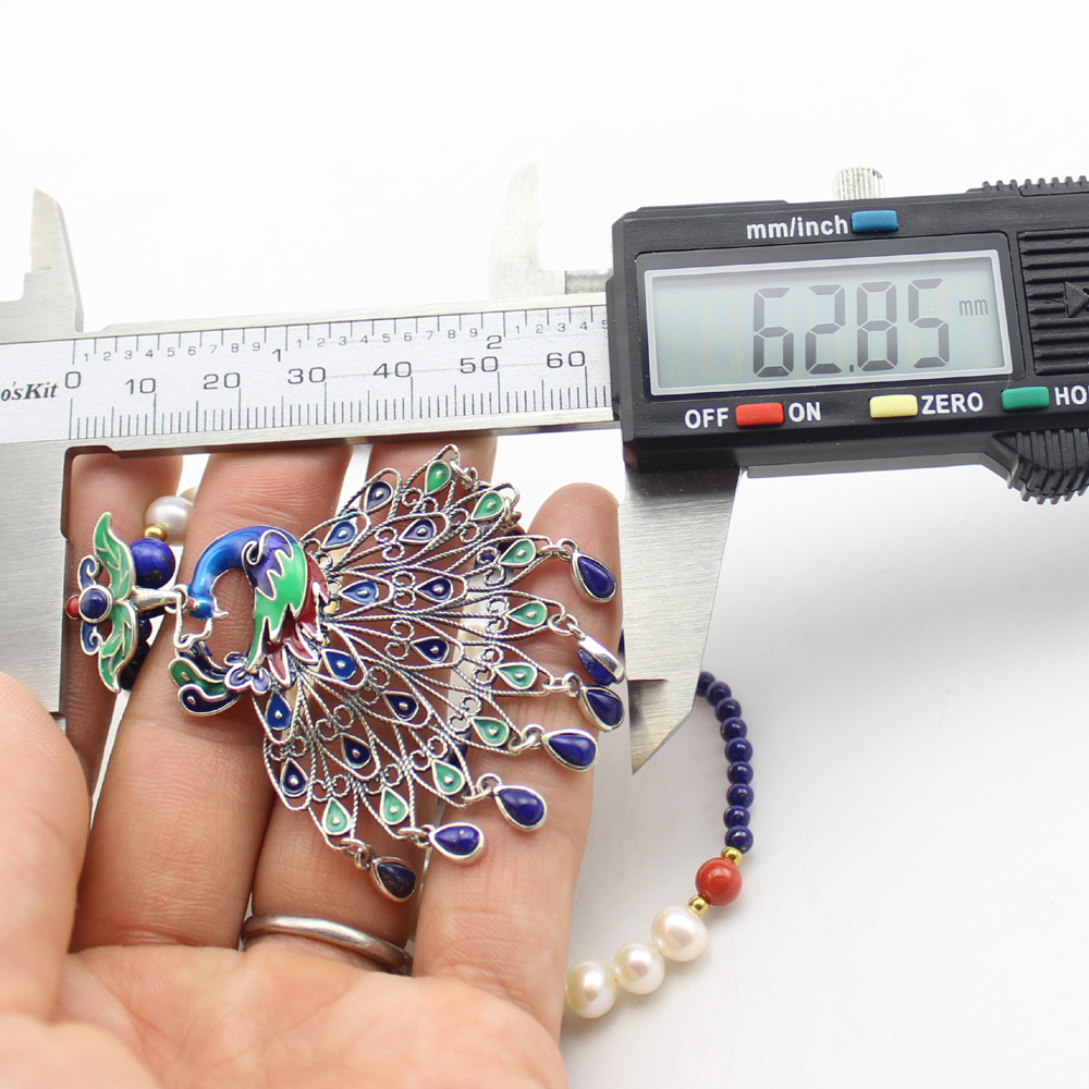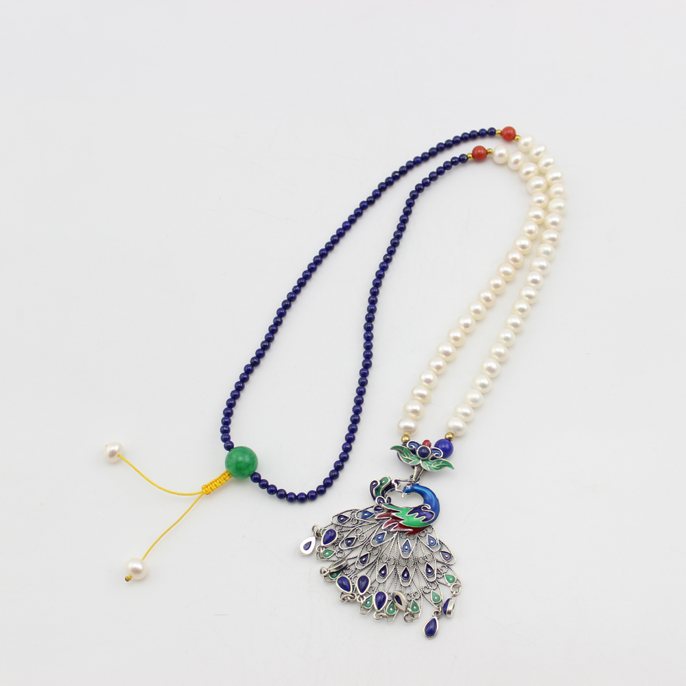 Be the first to review “Enamel Sterling Silver Lapis Lazuli, Coral Freshwater Pearl Necklace 131553”