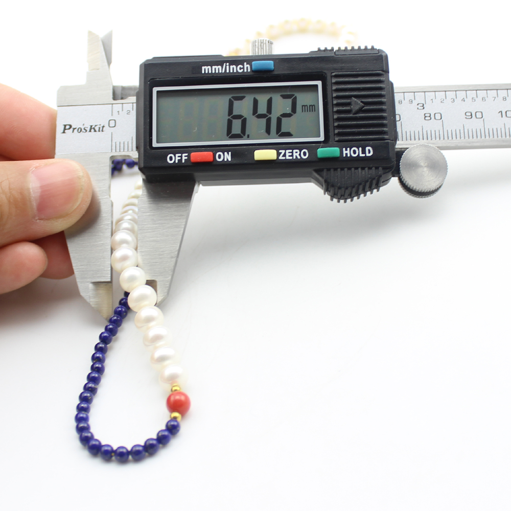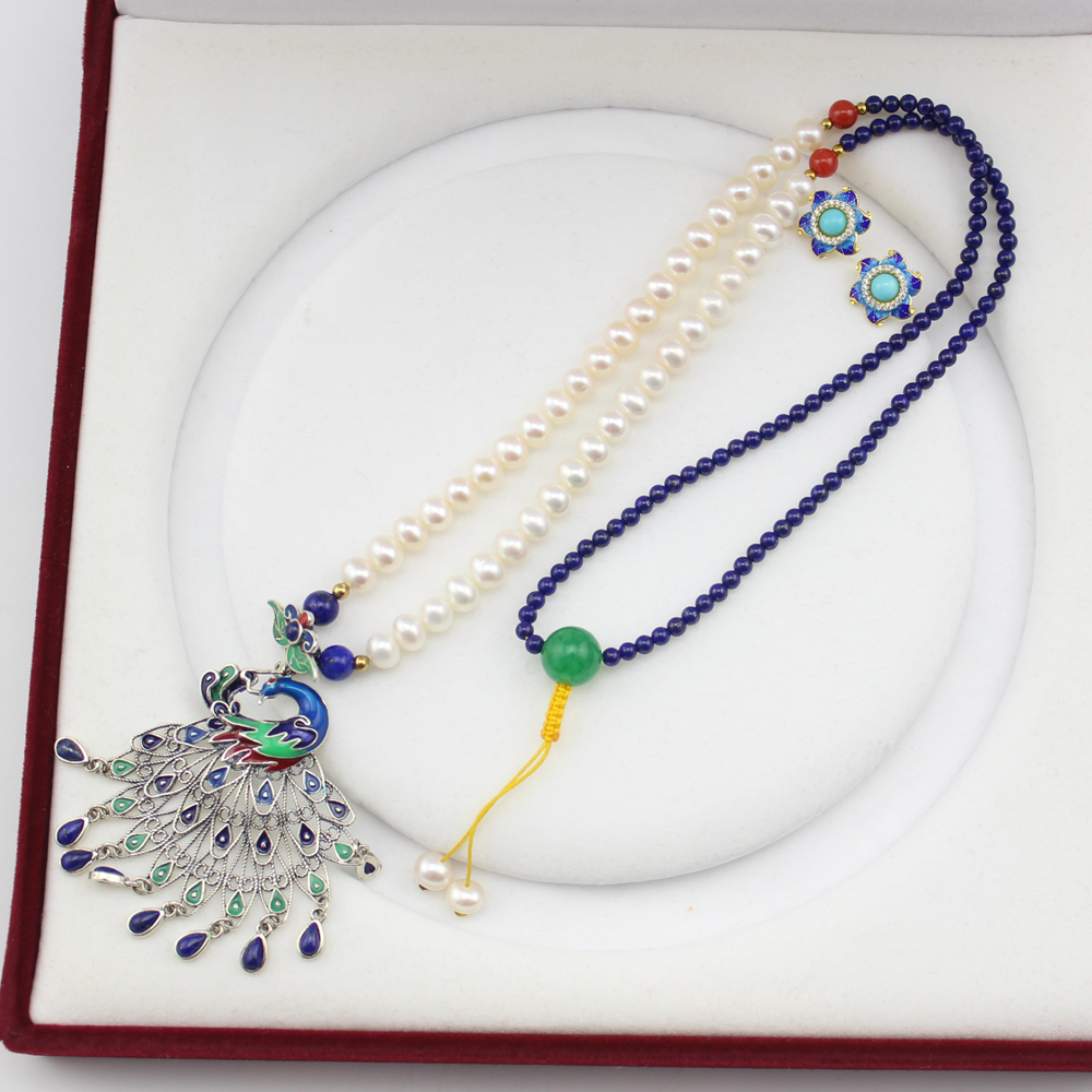 enamel sterling silver freshwater pearl necklace 131553Enamel Sterling Silver Lapis Lazuli, Coral Freshwater Pearl Necklace 131553
