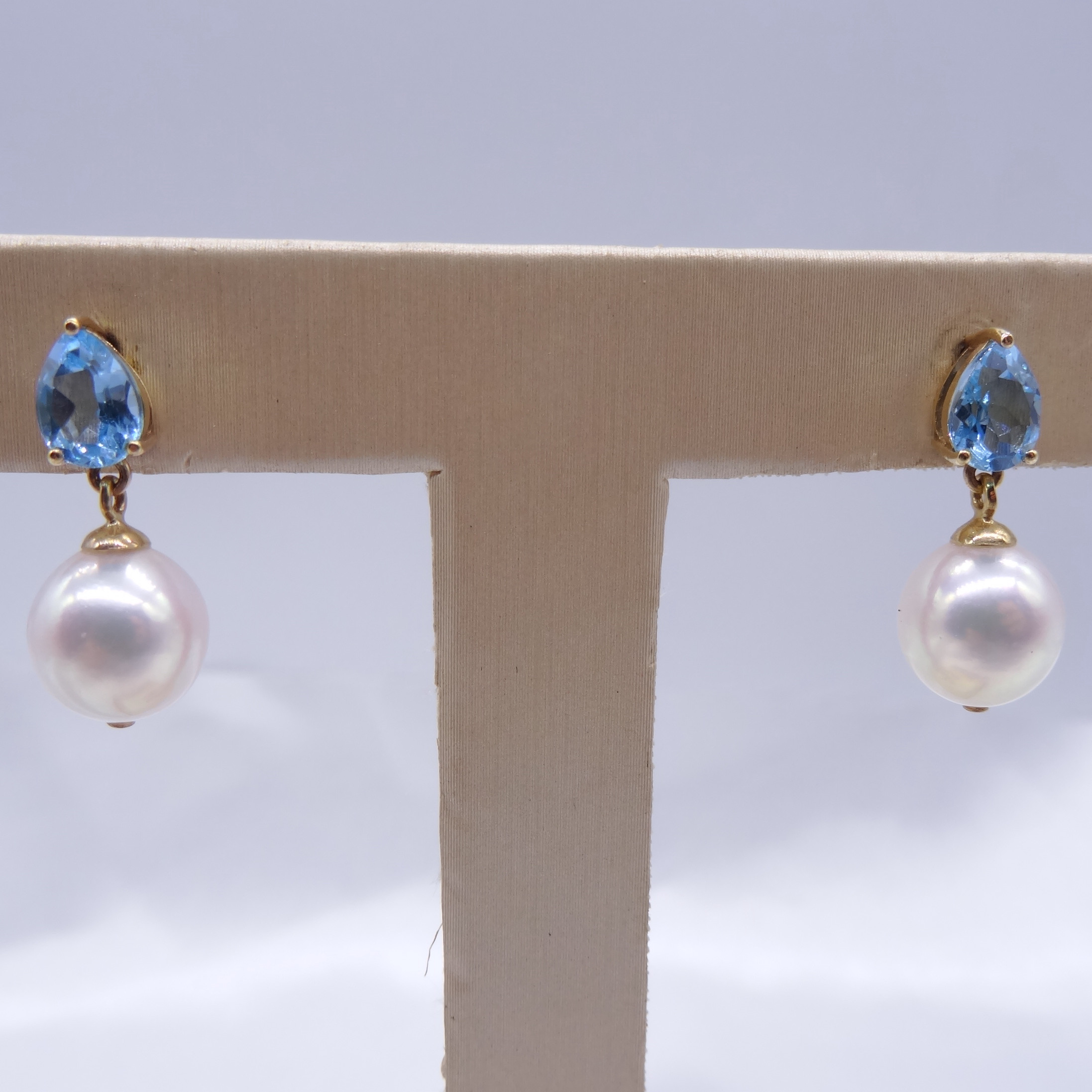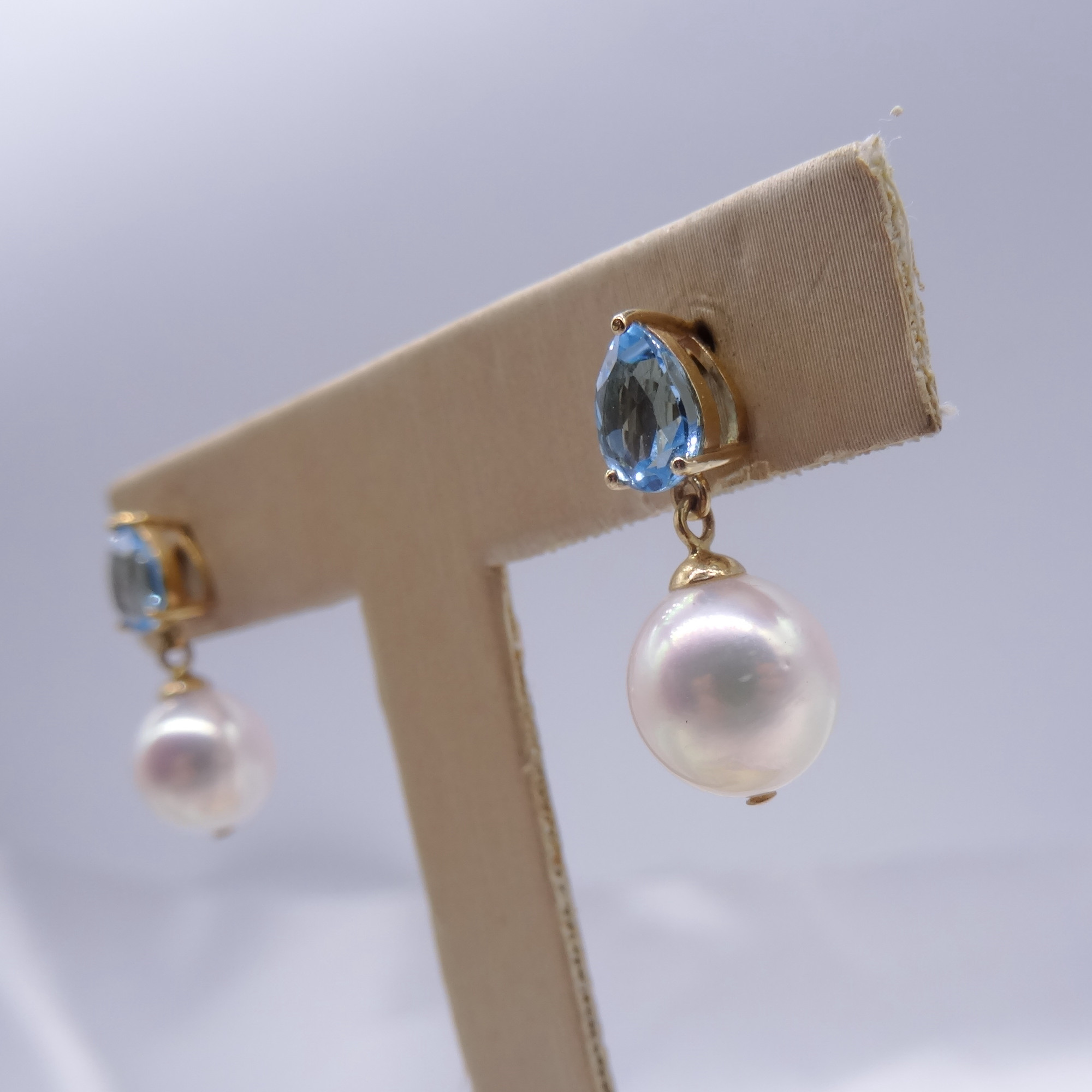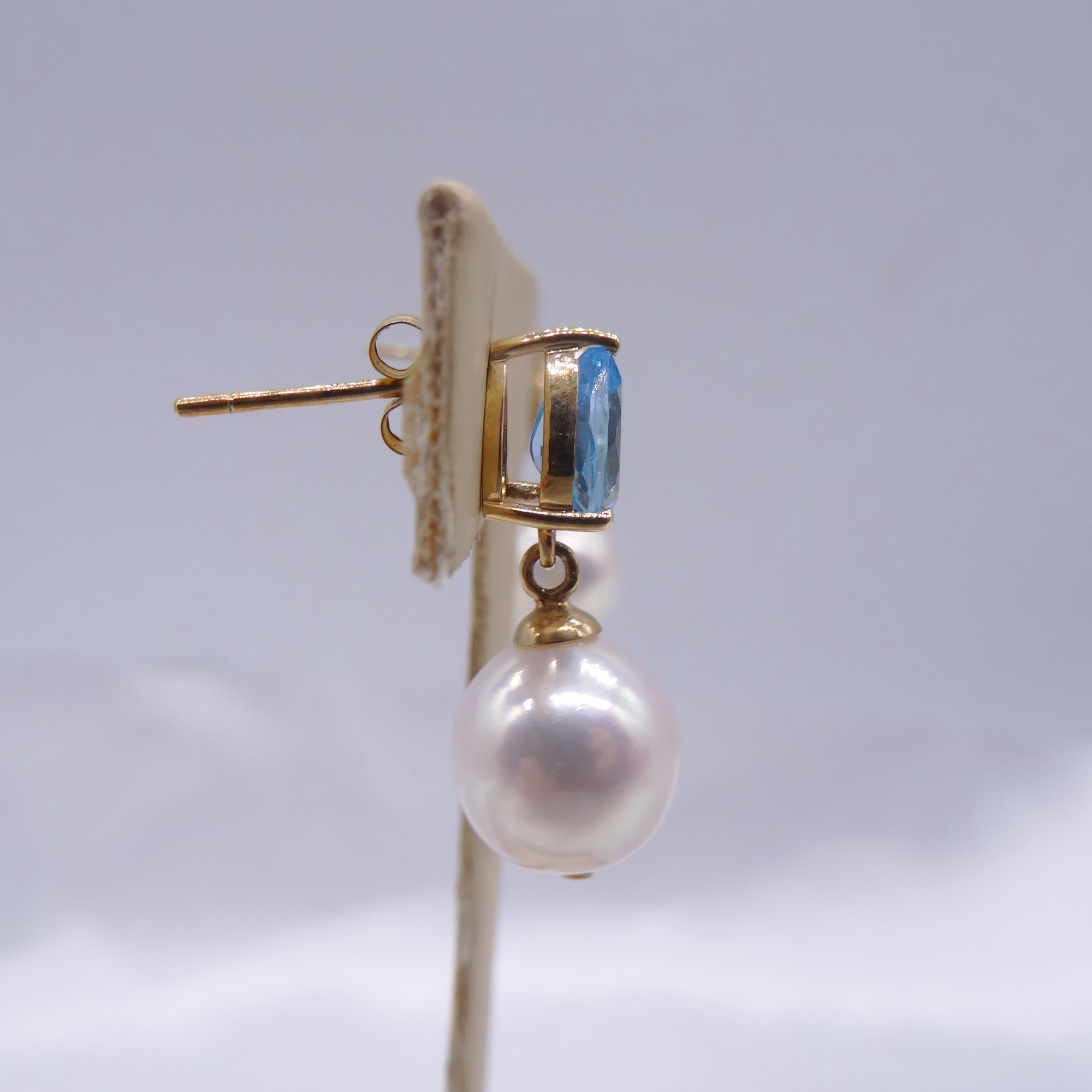 Solid 14k gold Topaz Akoya Pearl Earrings 270376