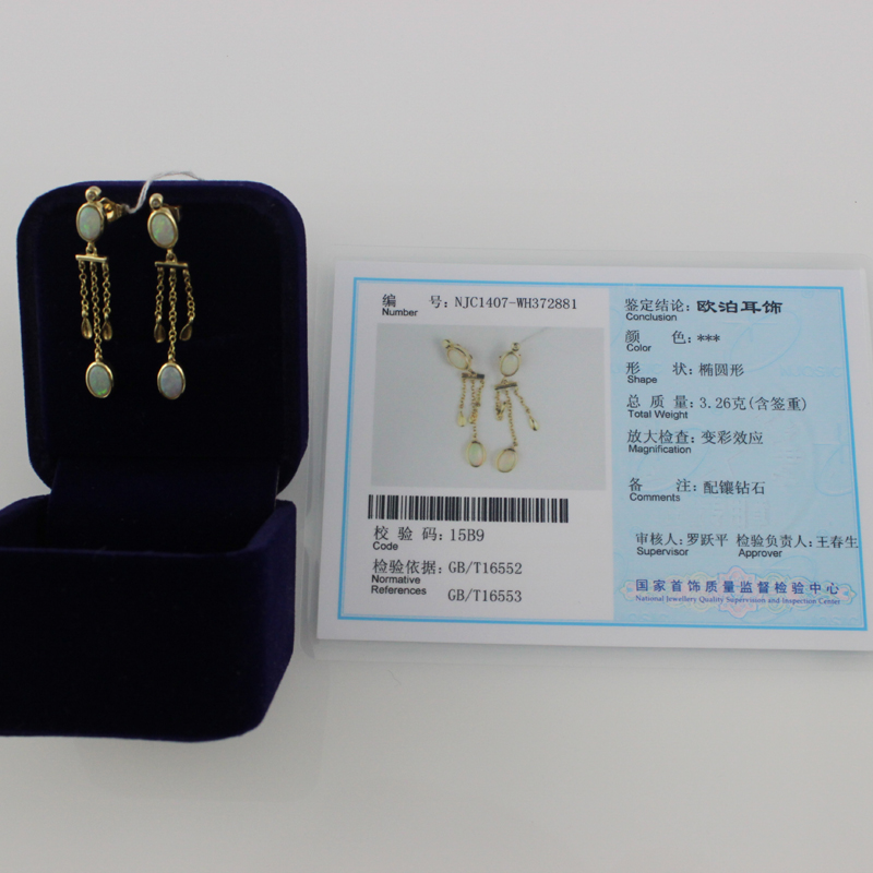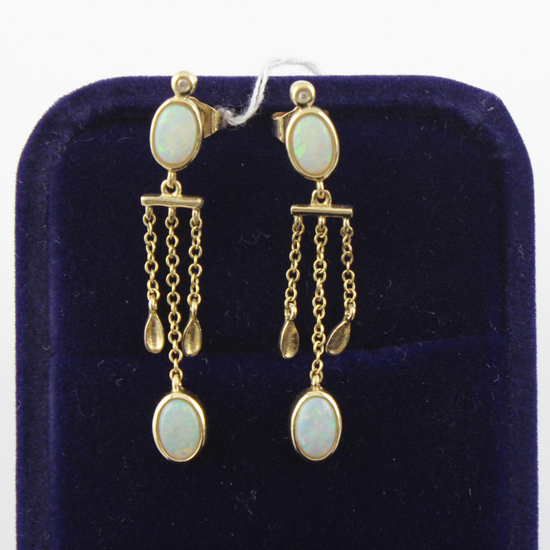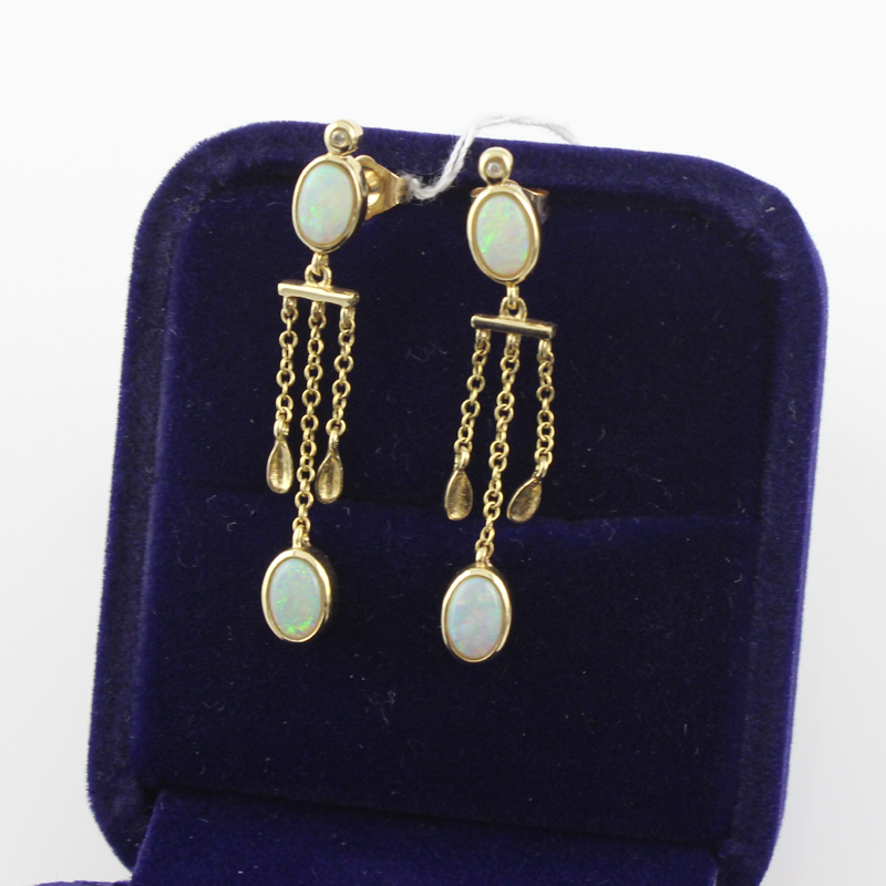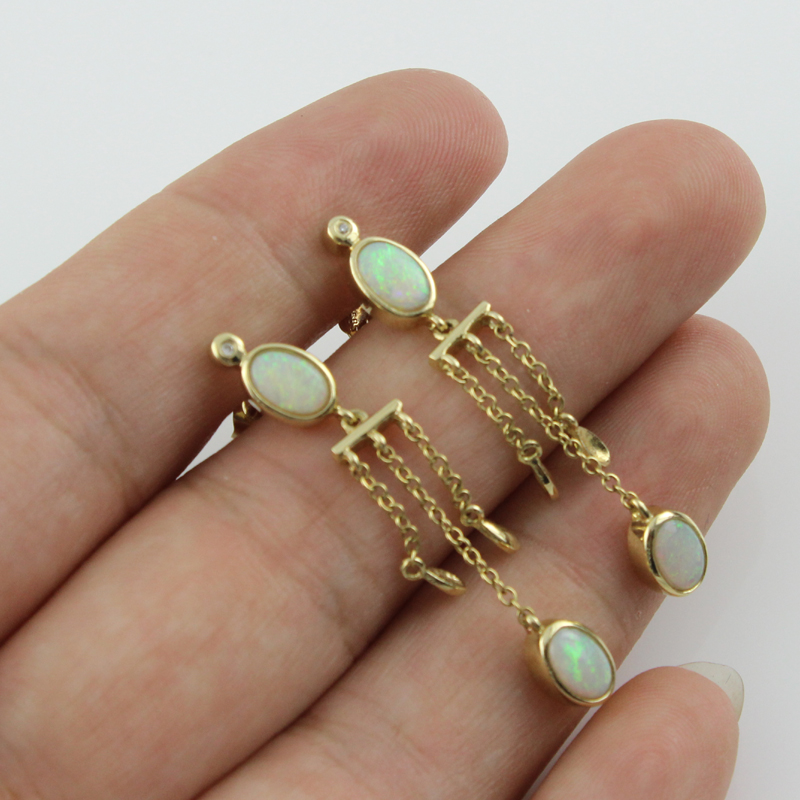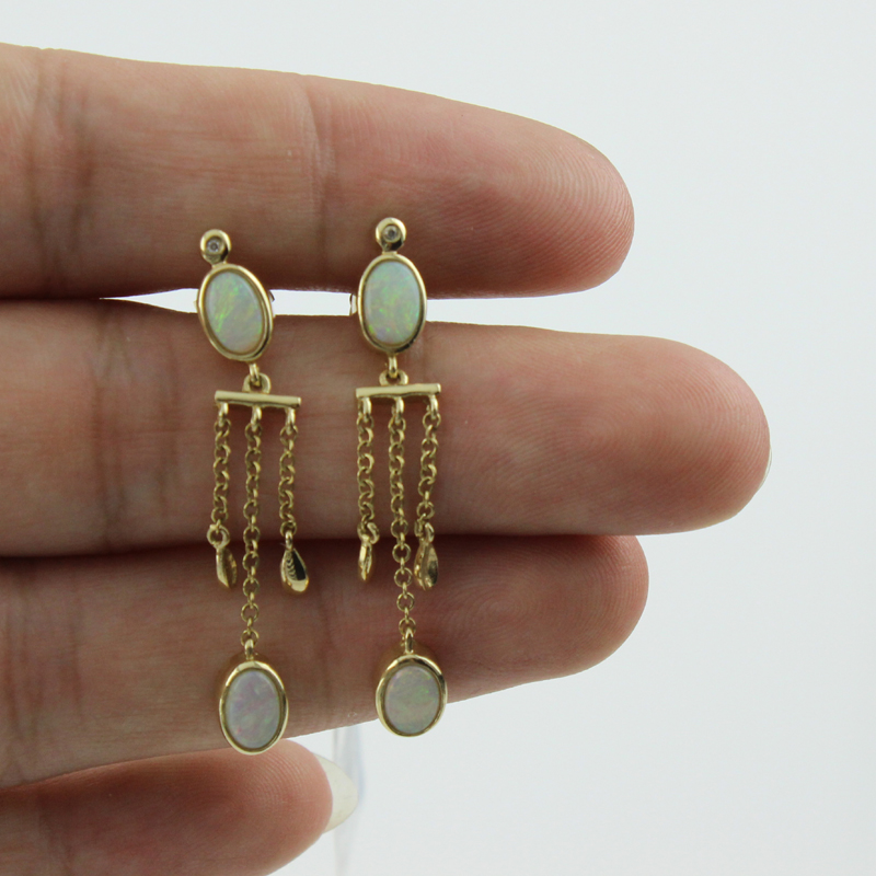 Solid 14kt yellow gold Natural Opal Diamonds Earrings 251067