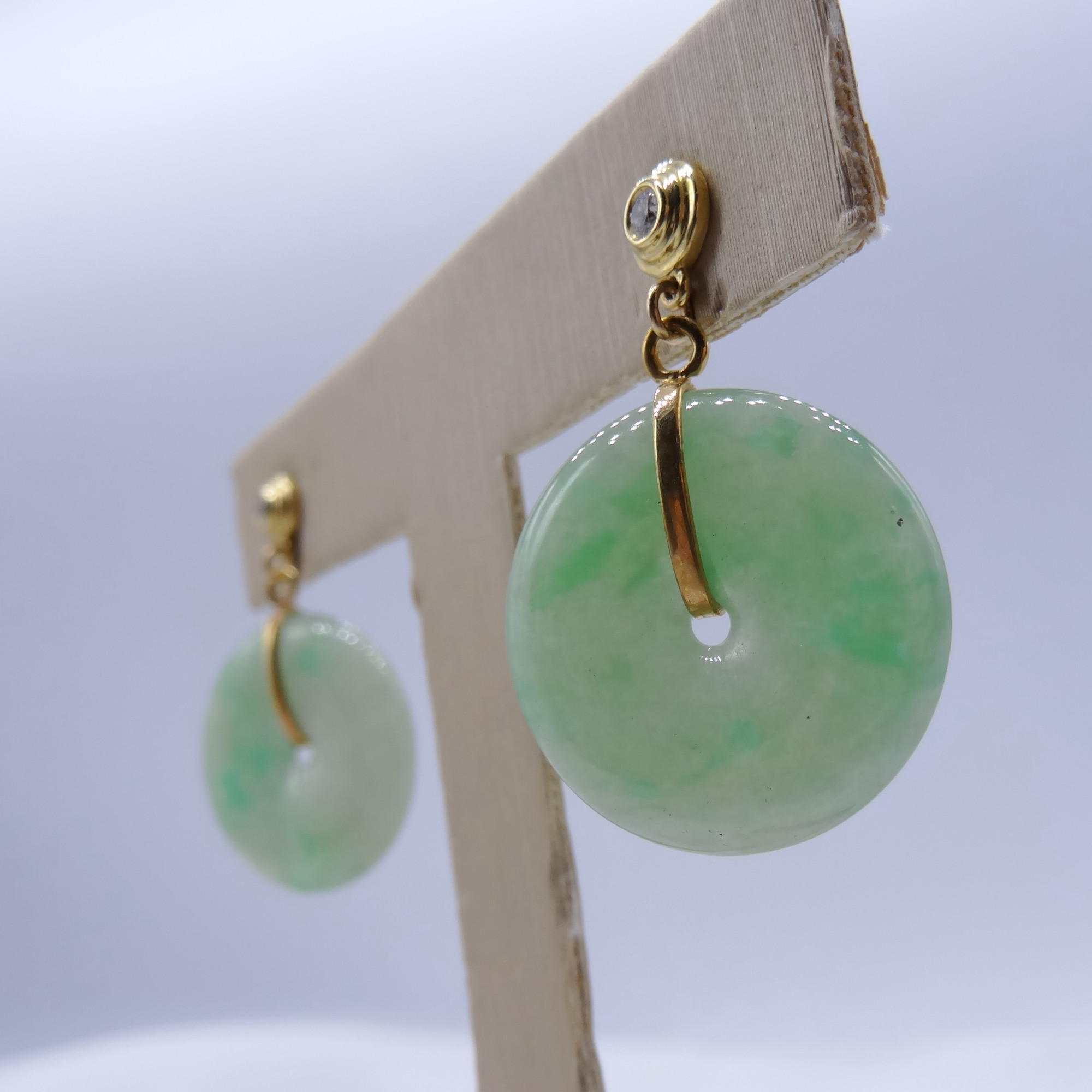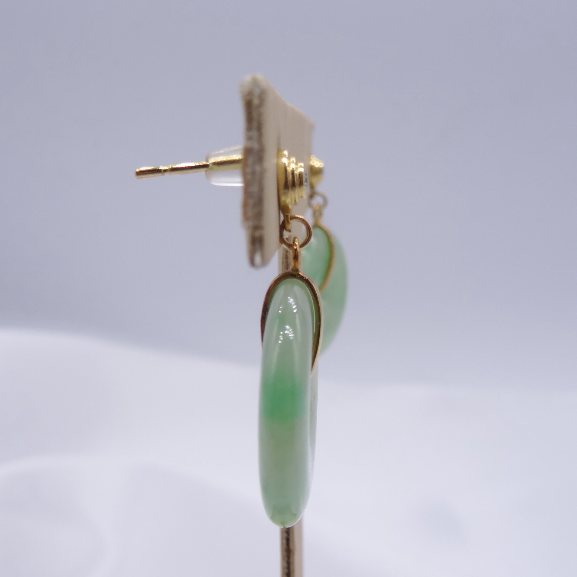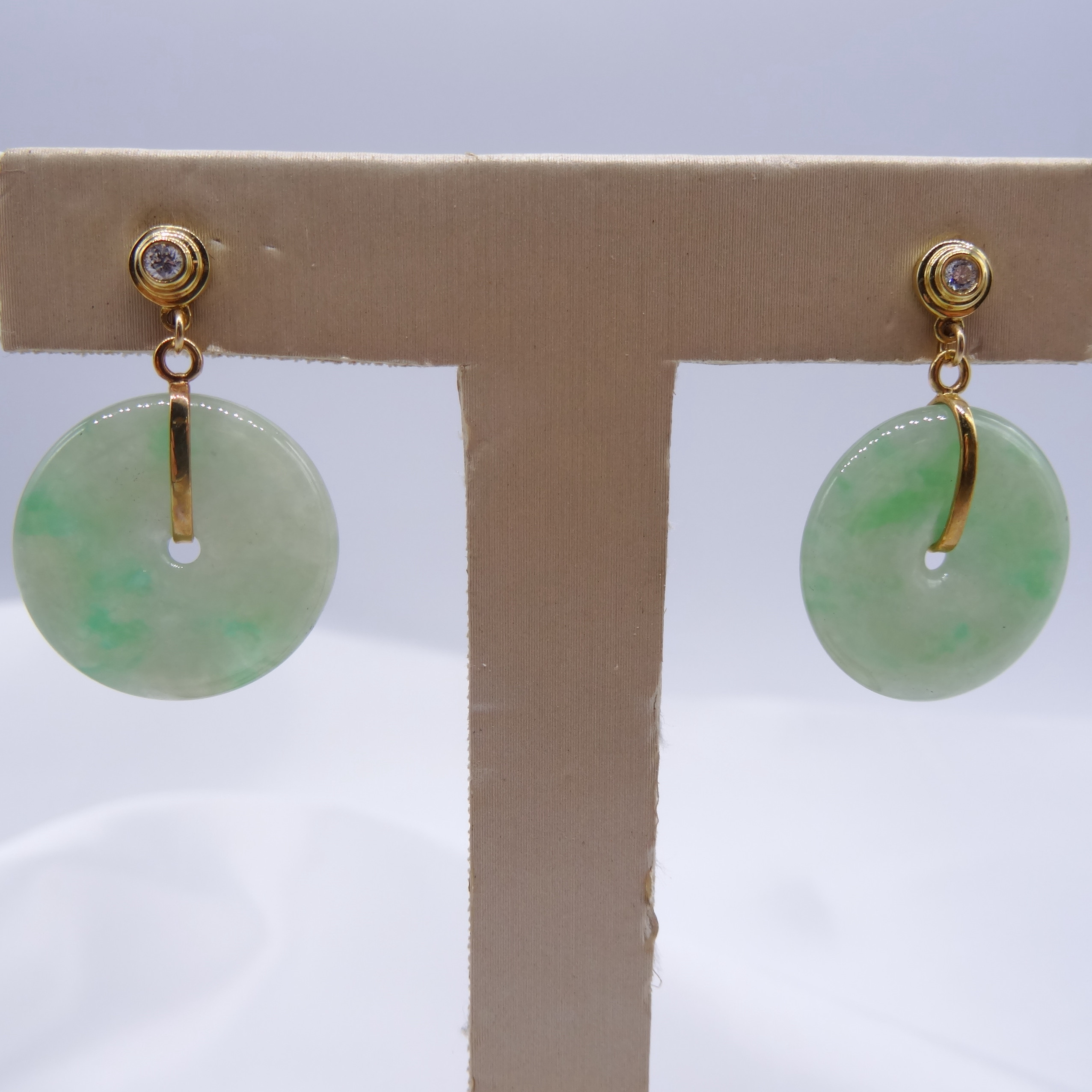 Solid 18K gold earrings with natural jade and diamonds with certificate 270624