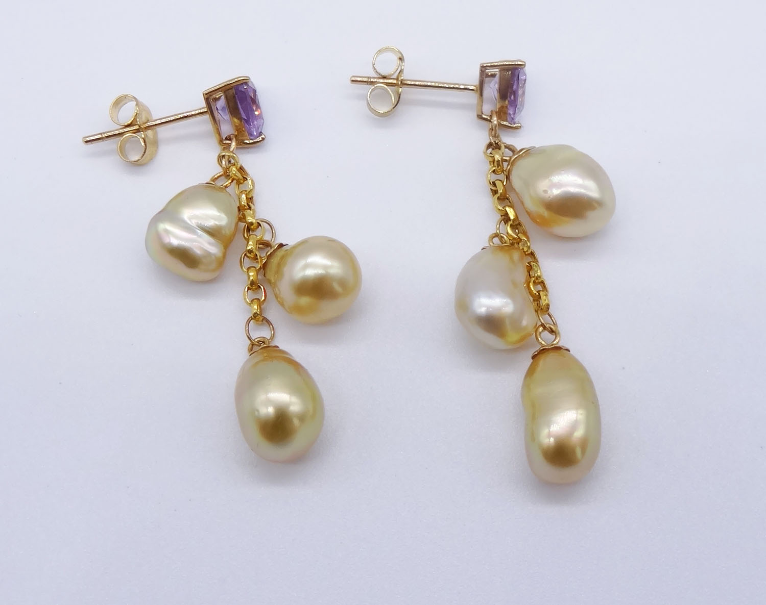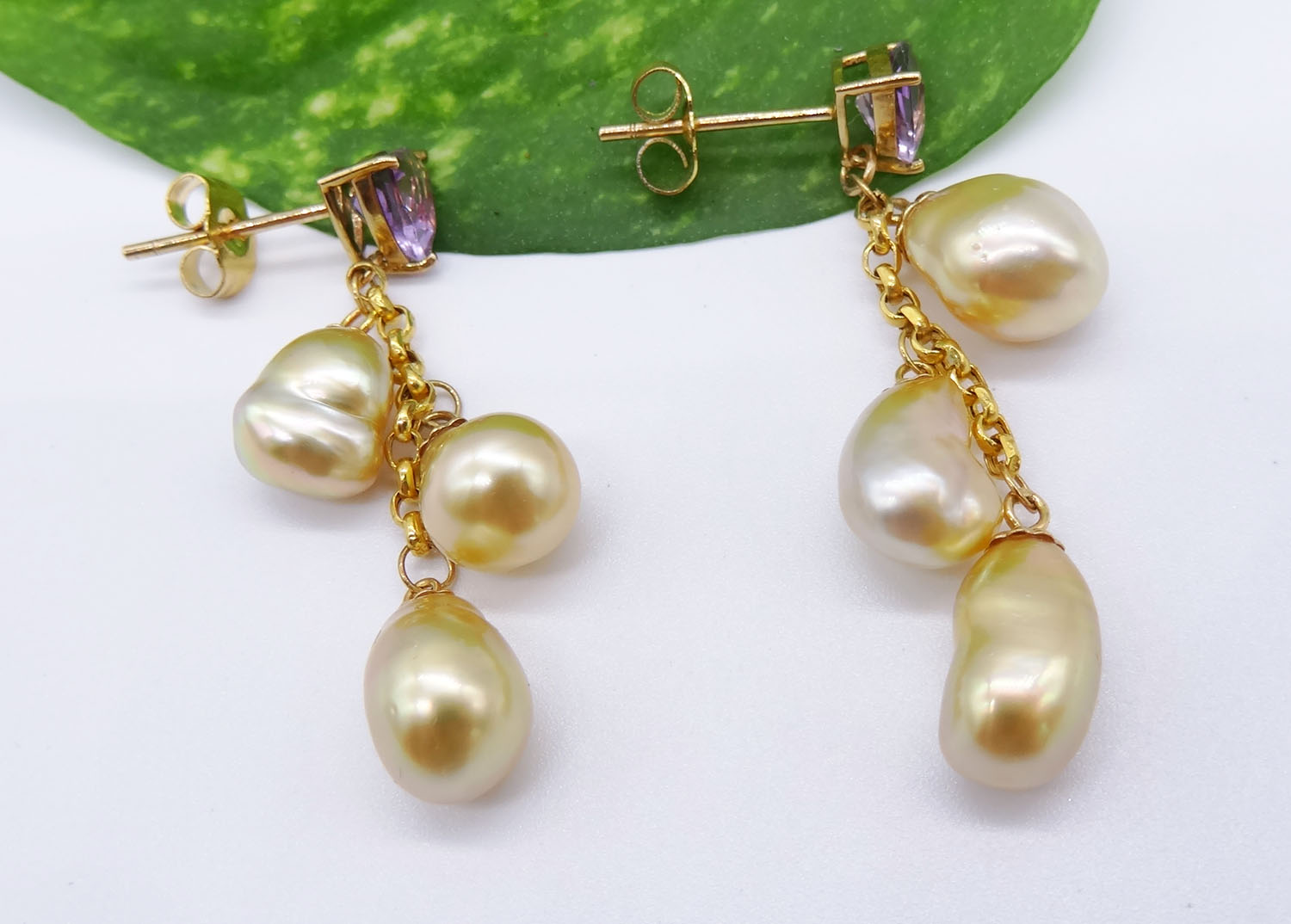 solid 18k gold south sea pearl amethysSolid 18k Gold Natural South Sea Pearl Amethyst 270626
