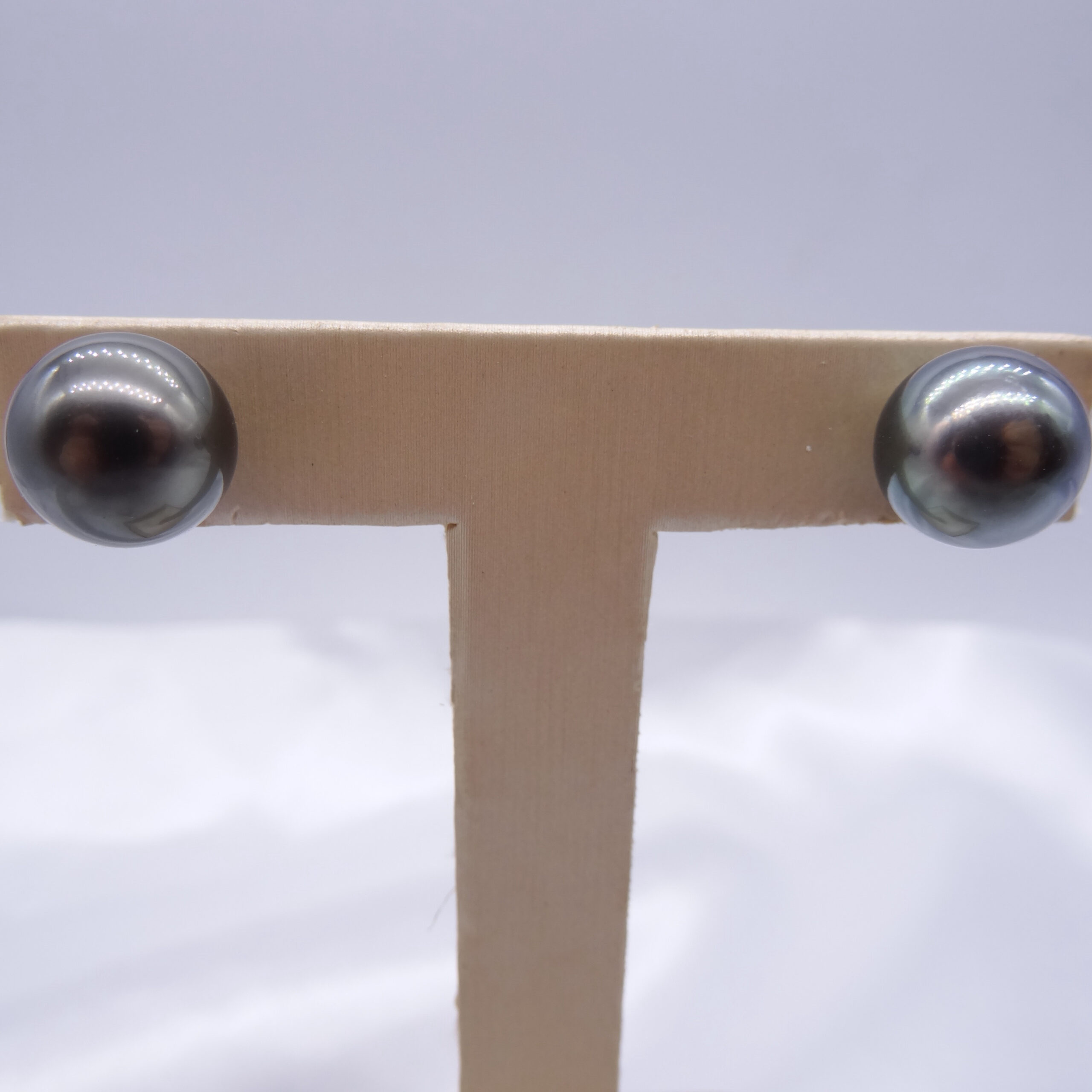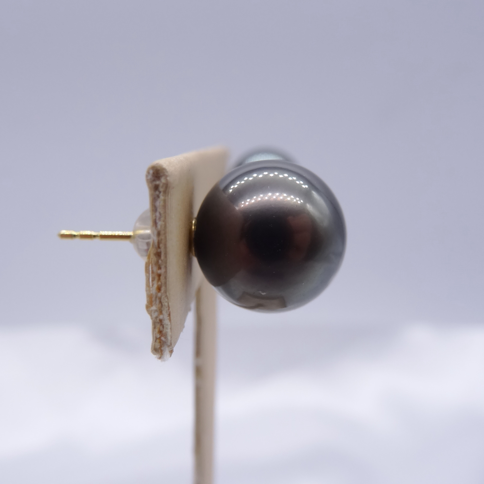 Solid 18k Gold Tahitian Black Pearl Earrings 270380