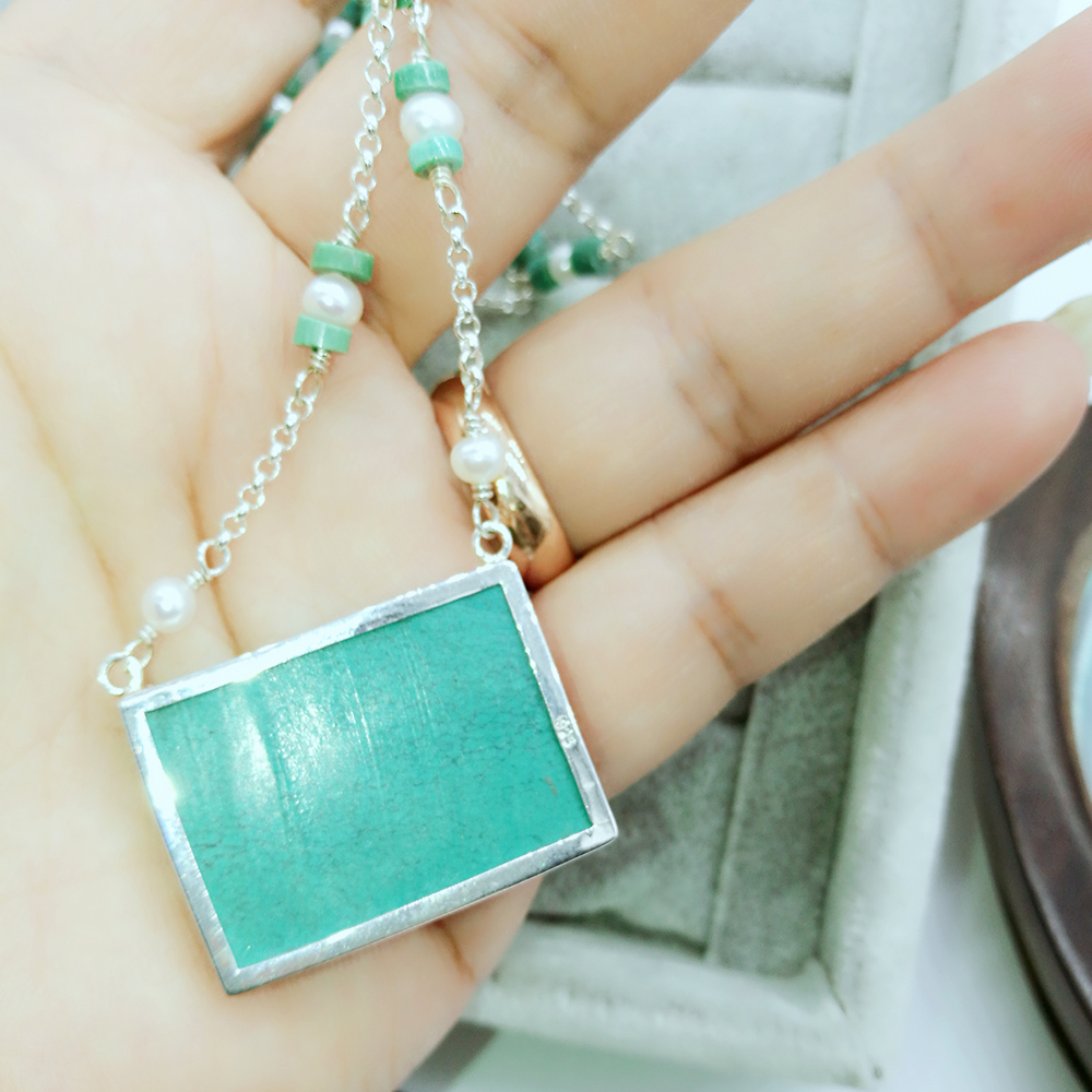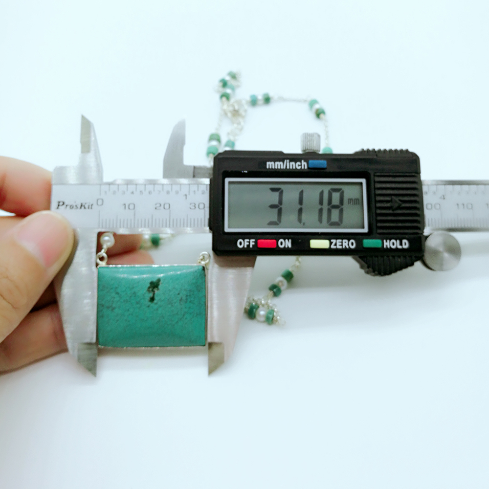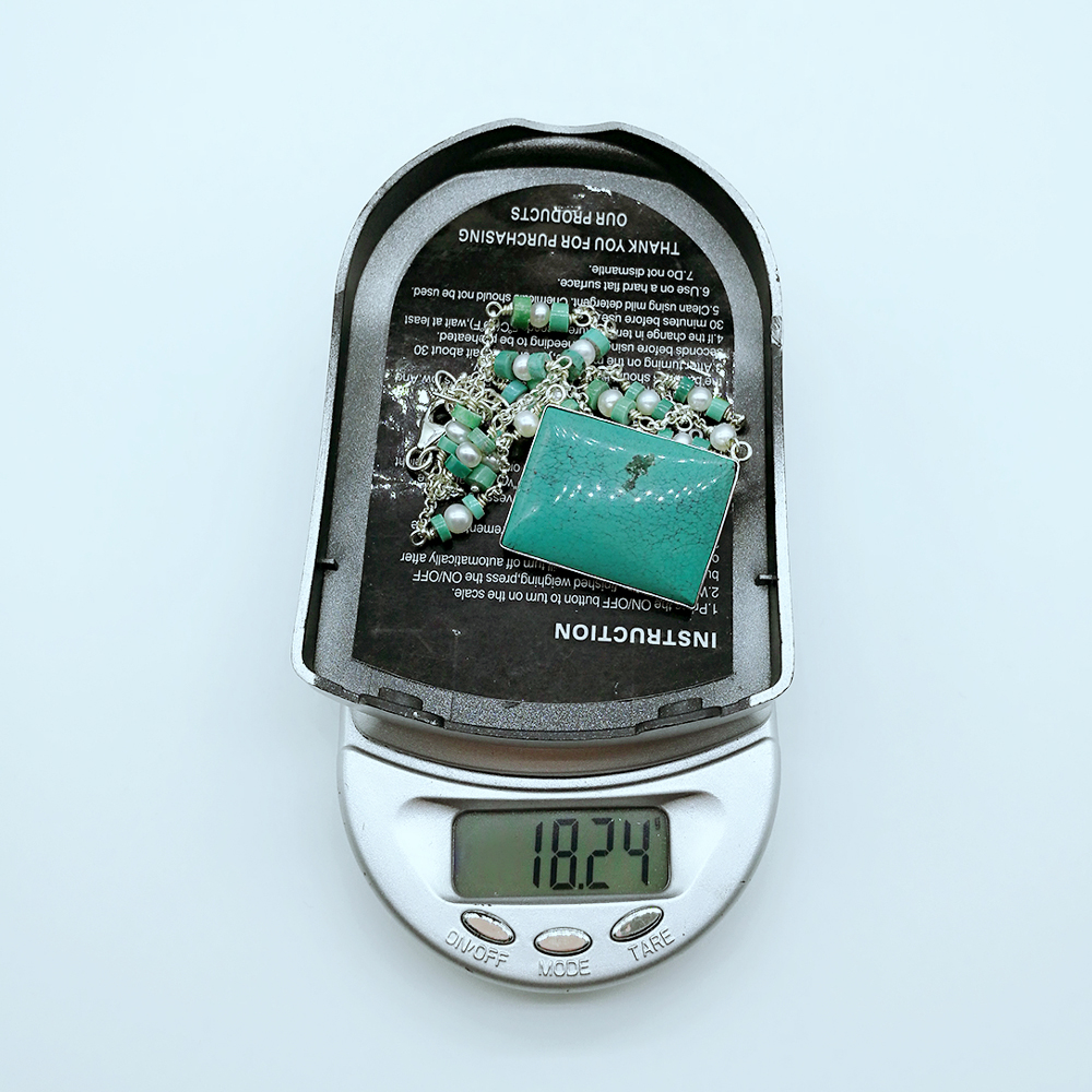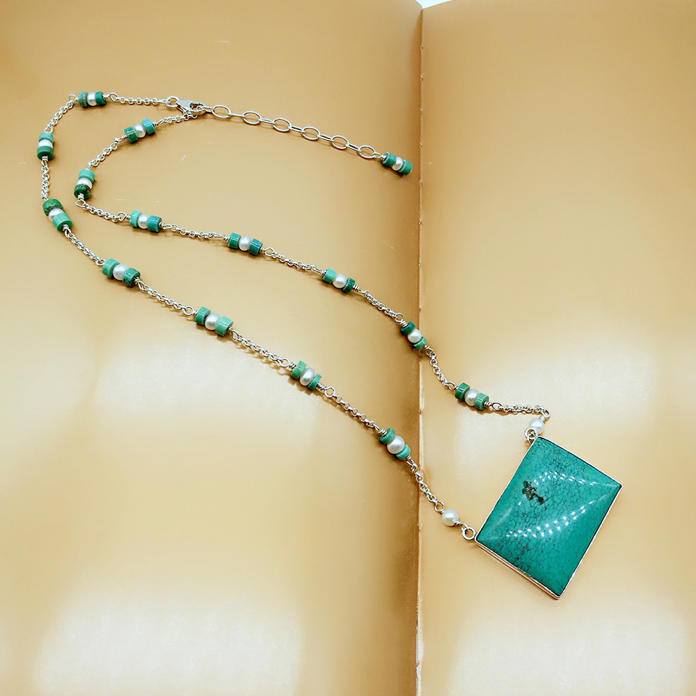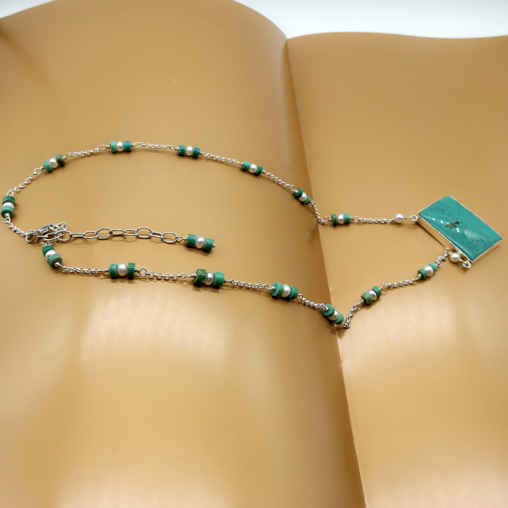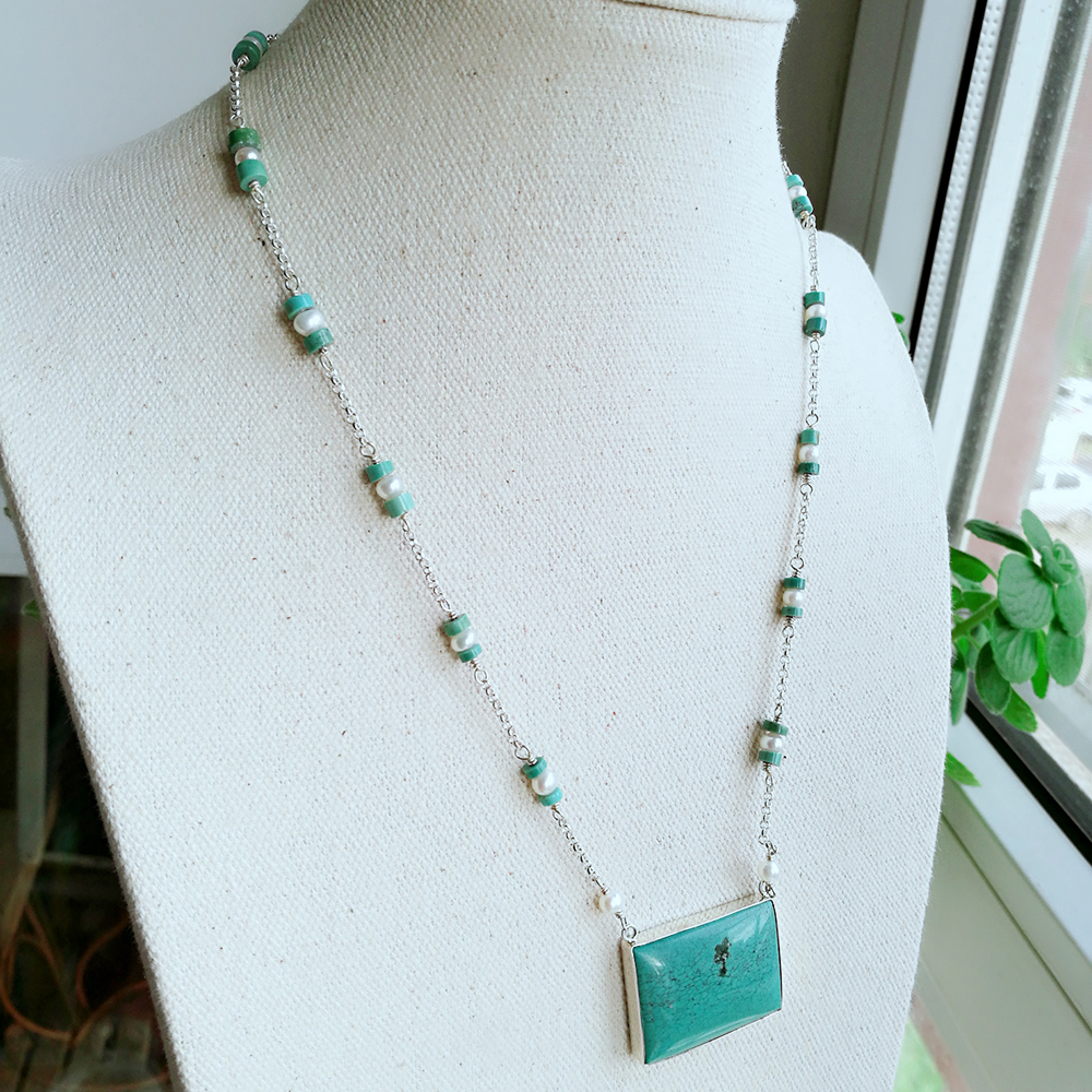 Sterling silver handcrafted turquoise and pearl necklace 131586