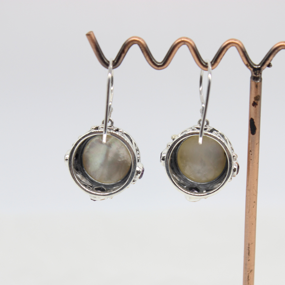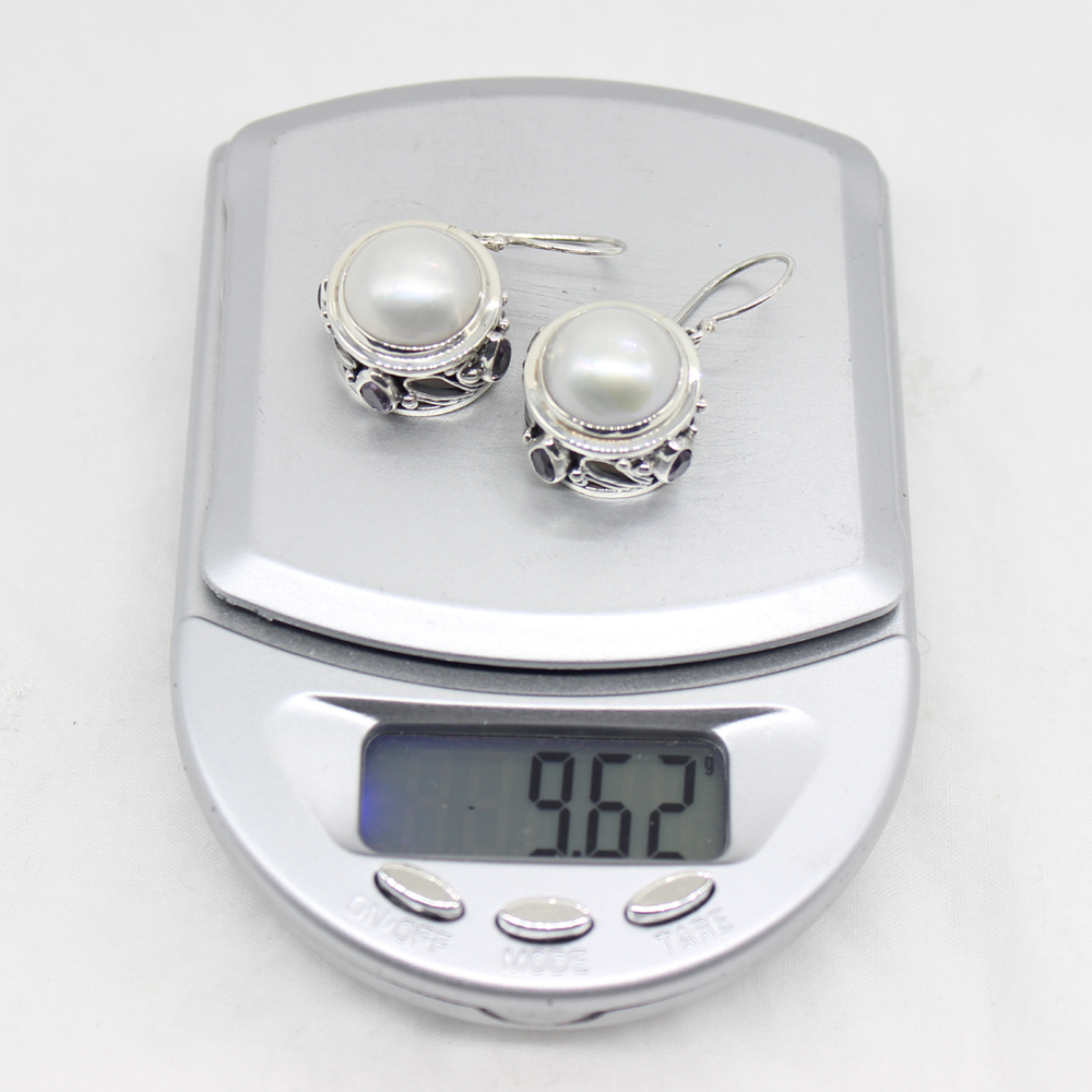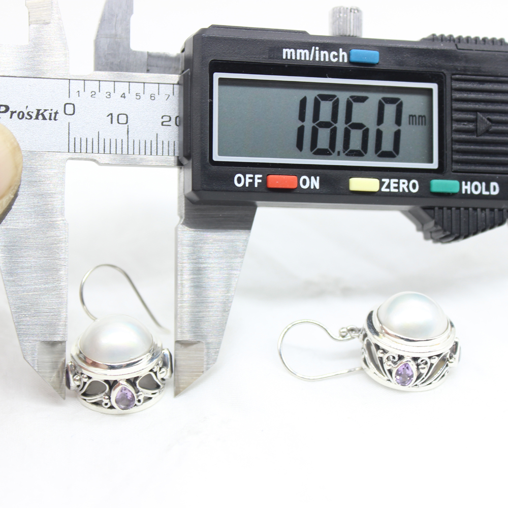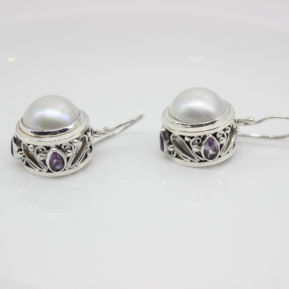 Genuine Mabe Pearl Amethyst Sterling Silver Earrings 241122