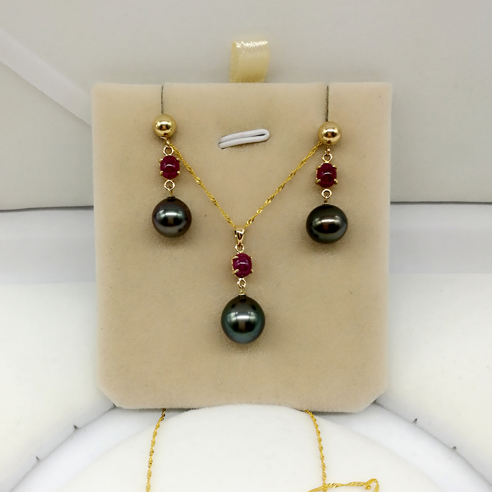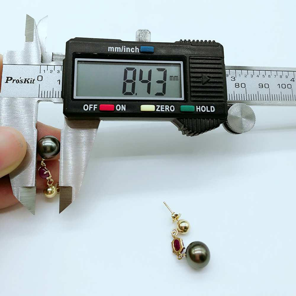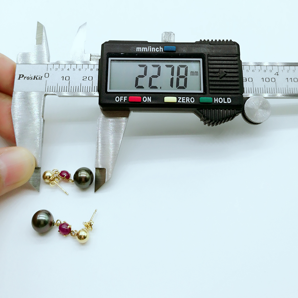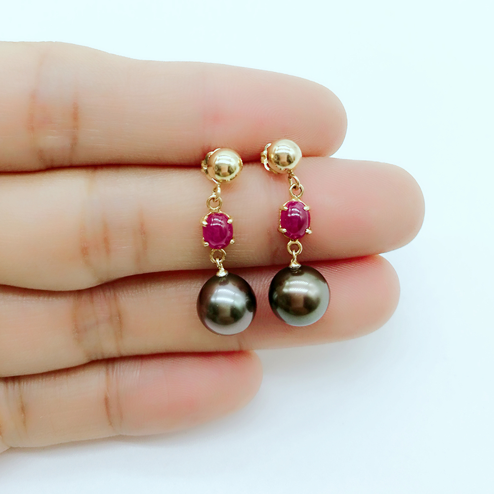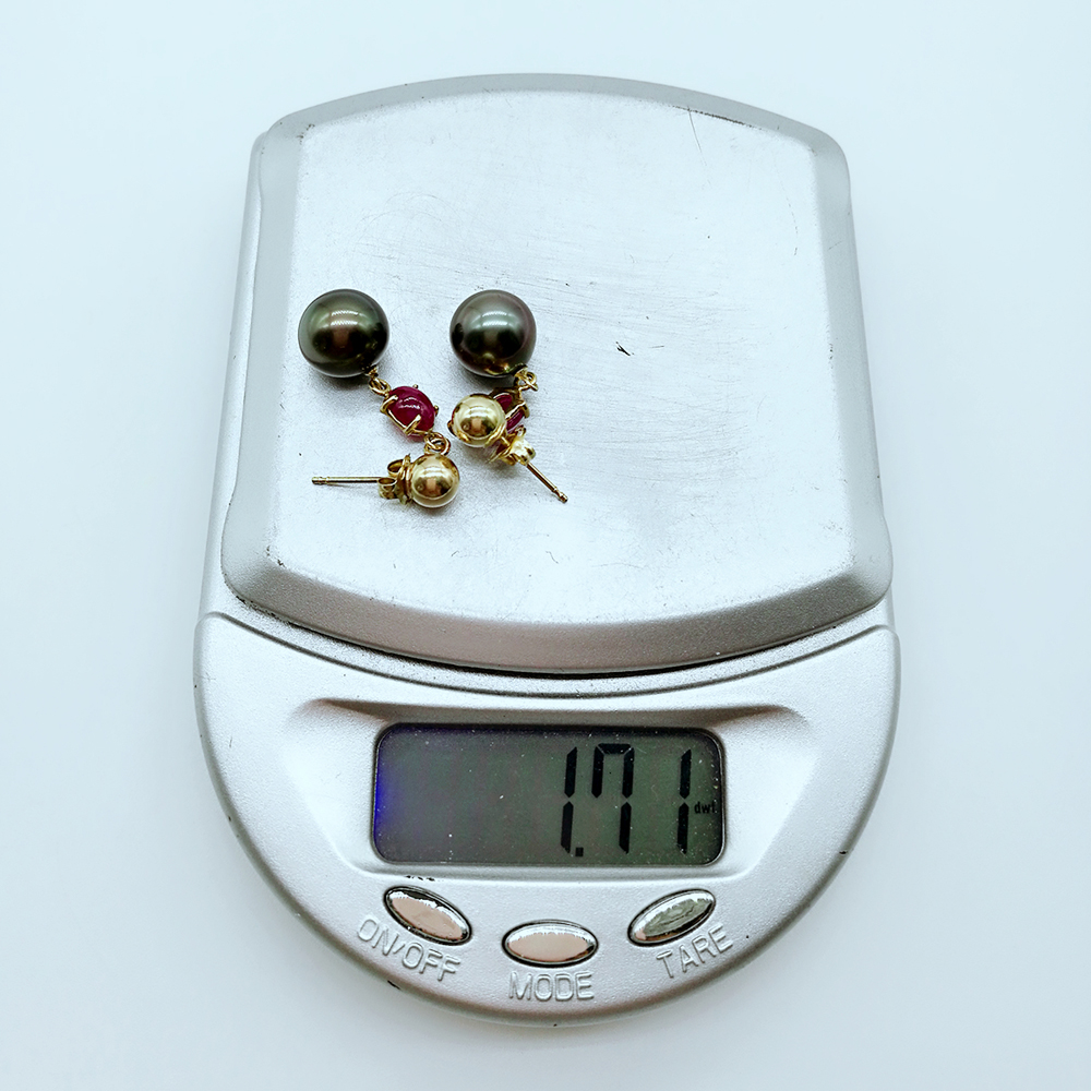Solid 14k Gold Ruby Tahitian Black Pearl Earrings 211372